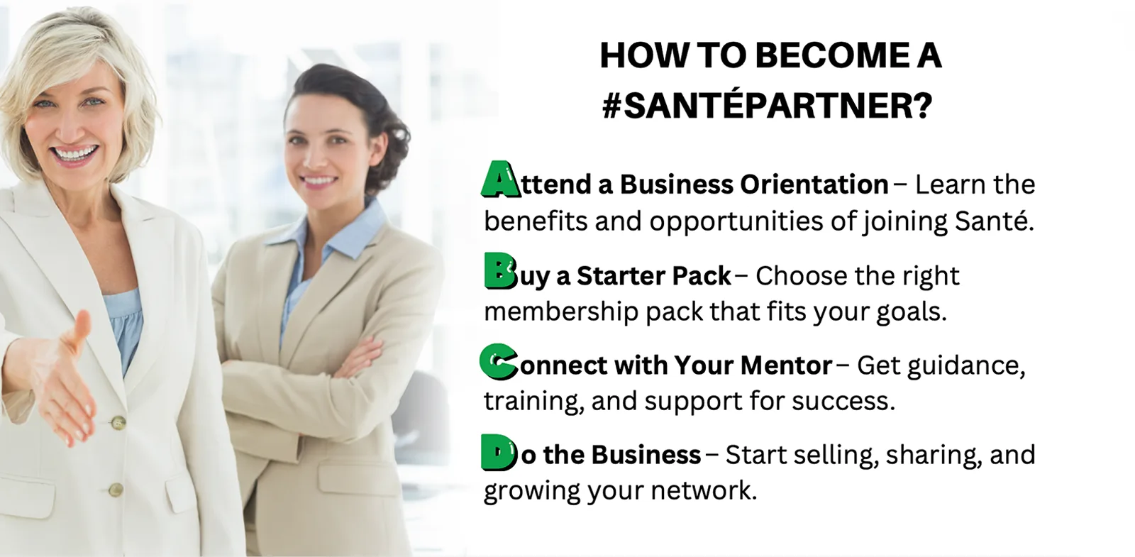 by providing access to Santé’s world-class organic products, business tools, training, and community support—